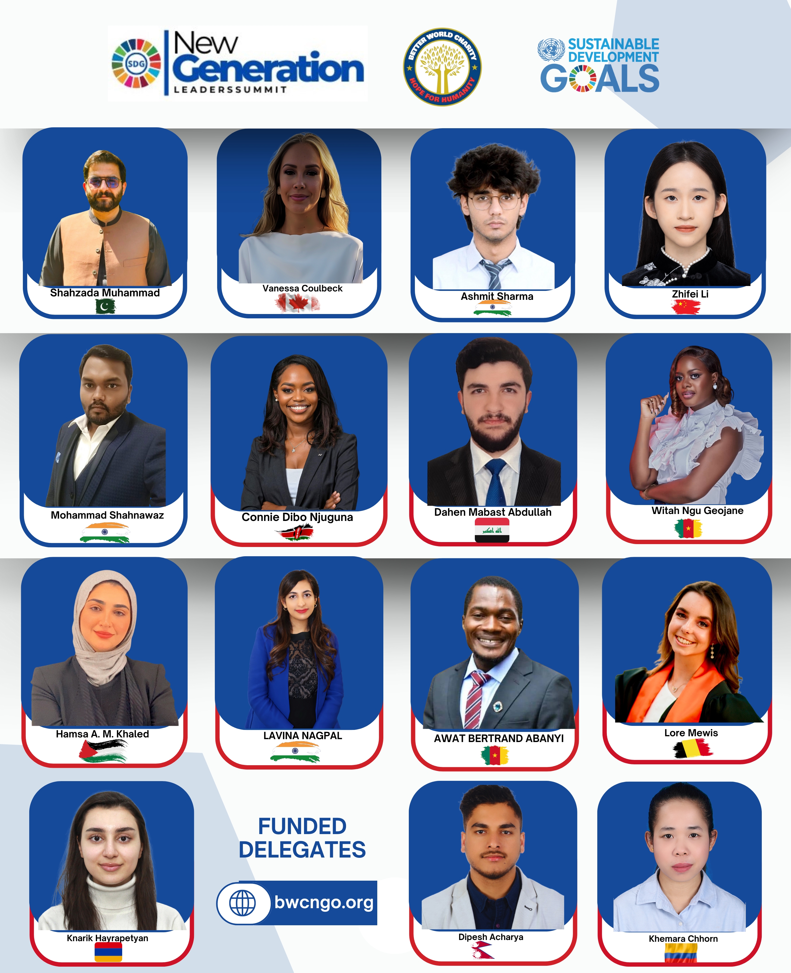 The wait is over! Meet the selected fully and partly funded delegates for the New Generation Leaders' Summit 2025 (NGLS2025) in Dubai. These changemakers will collaborate with global leaders, drive innovation, and accelerate progress toward the UN Sustainable Development Goals (SDGs).